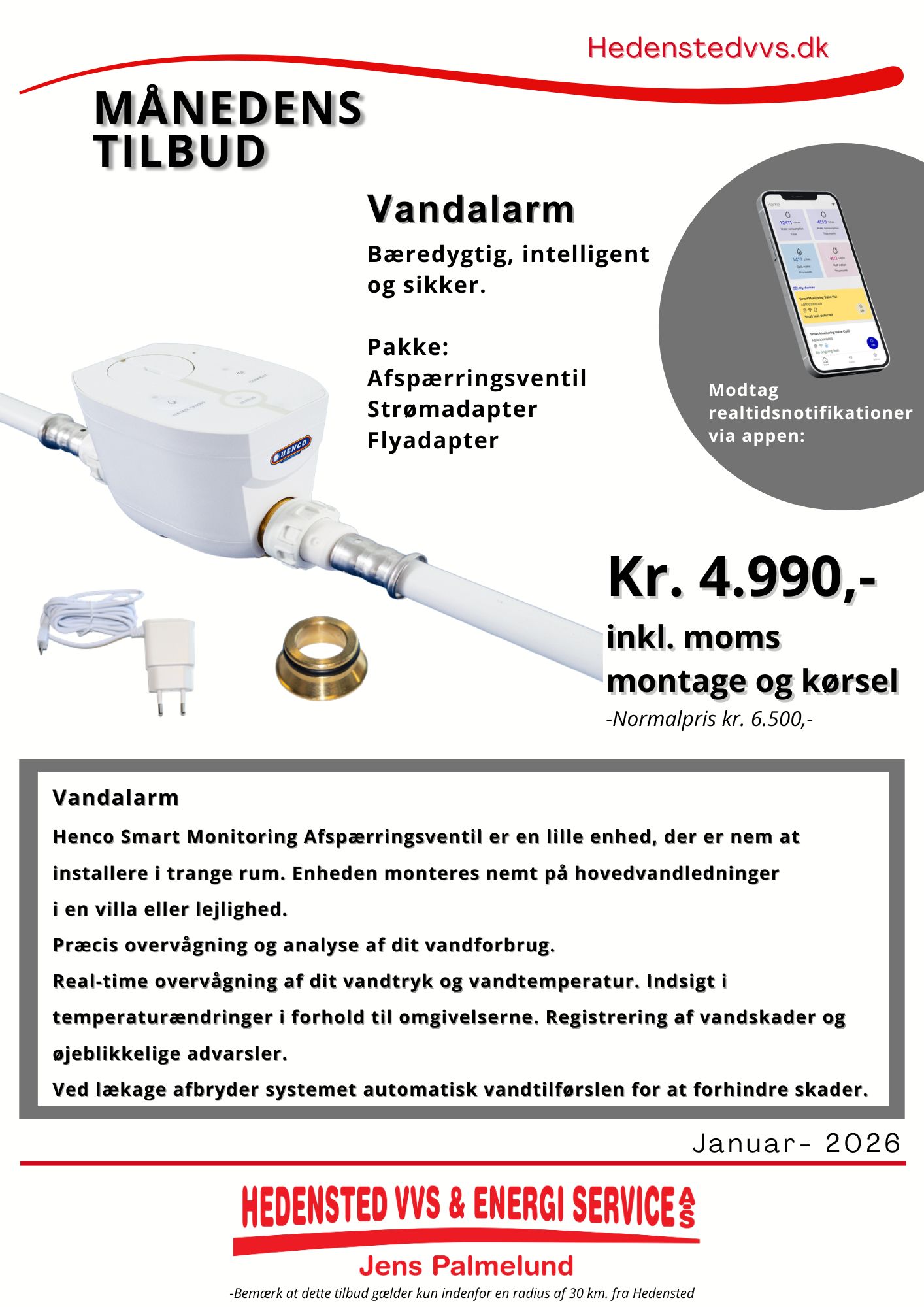 Max. afstand fra firmaets adresse, 30 km.